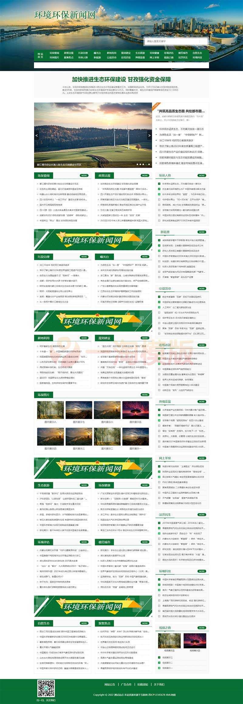 节能环保新闻资讯网站pbootcms模板,文章博客类地方新闻网站源码下载。
