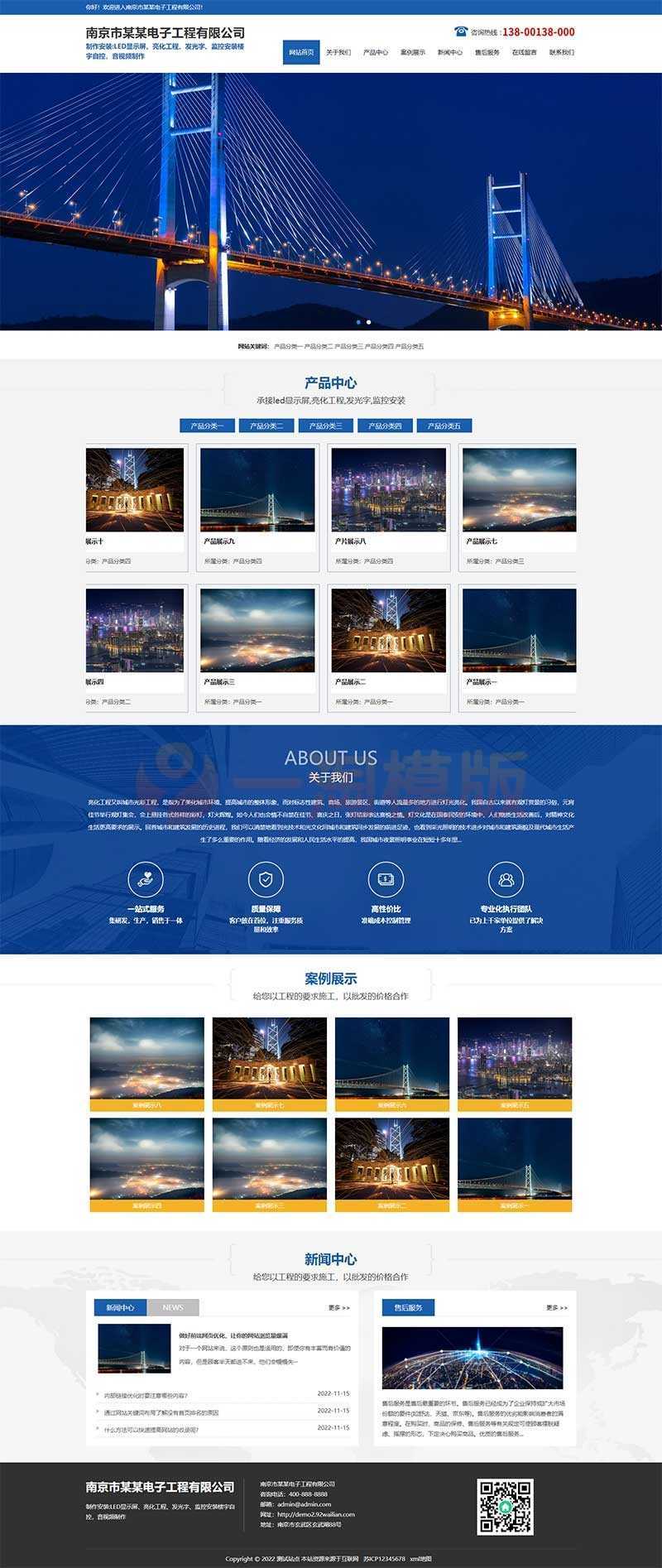 蓝色大气楼宇亮化工程网站pbootcms模板,照明工程公司网站源码下载。