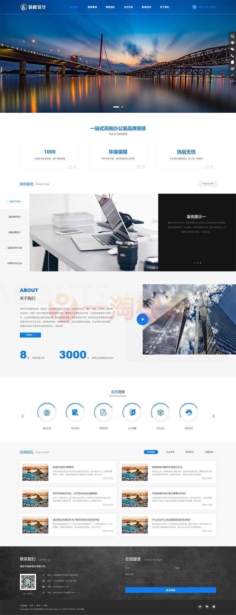 响应式高端大气的装修设计公司pbootcms模板,办公室装修装饰公司网站源码。