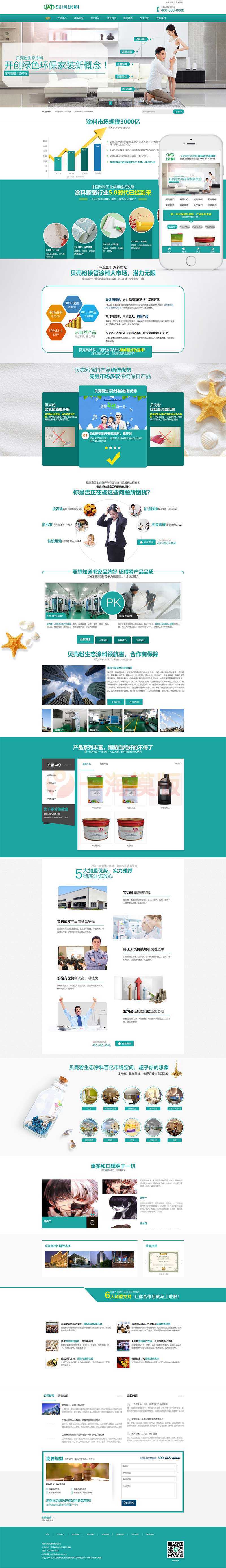 营销型环保贝壳粉生态涂料网站pbootcms模板,青色油漆涂料网站源码下载。