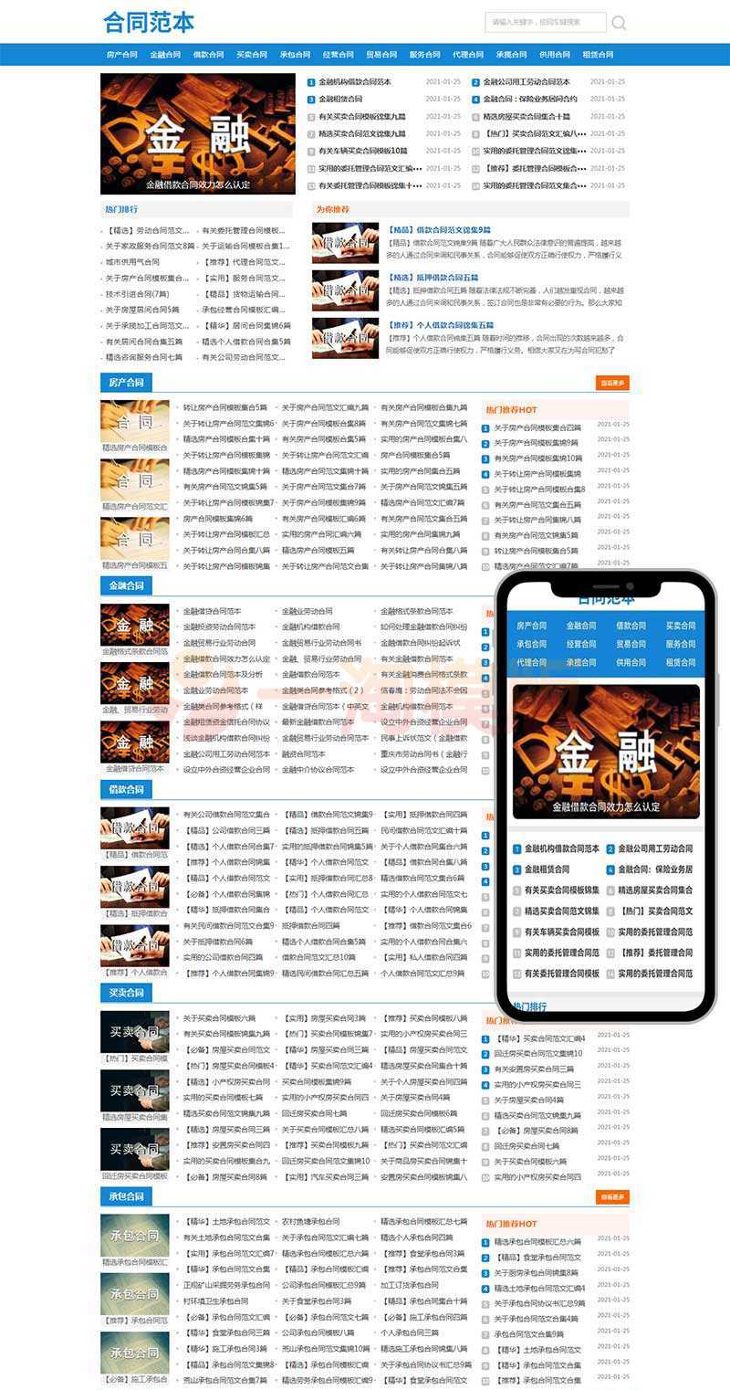 响应式合同范文类网站pbootcms模板,合同模板网站源码下载。