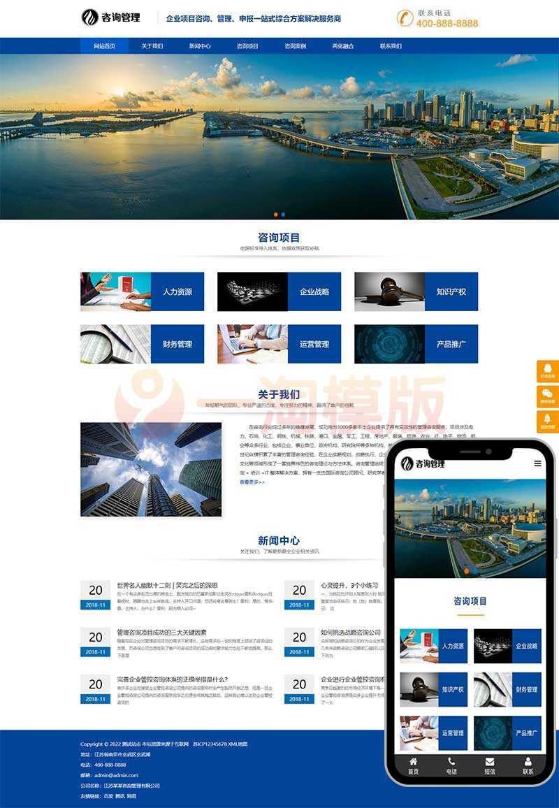 响应式咨询管理类网站pbootcms模板,HTML5企业管理咨询机构网站源码下载。