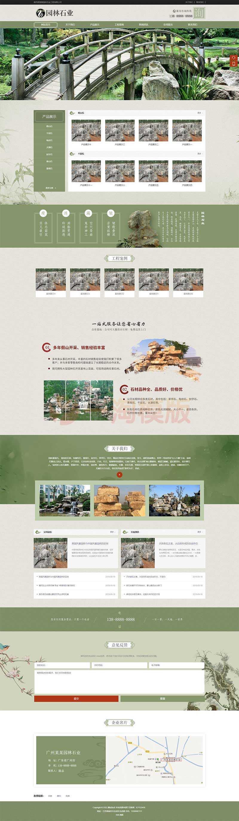 中国风古典园林石业网站pbootcms模板,景观假山园林网站源码下载。