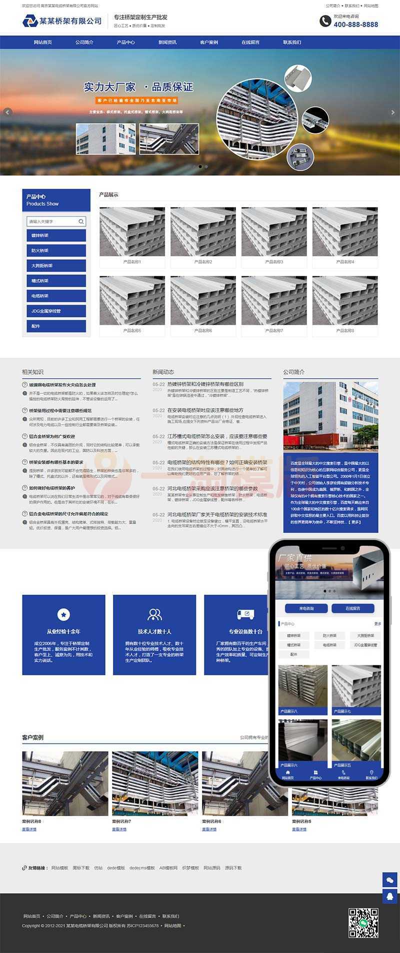 PbootCMS内核开发的网站模板,该模板适用于通用企业网站、电缆桥架网站等企业,当然其他行业也可以做,只需要把文字图片换成其他行业的即可;