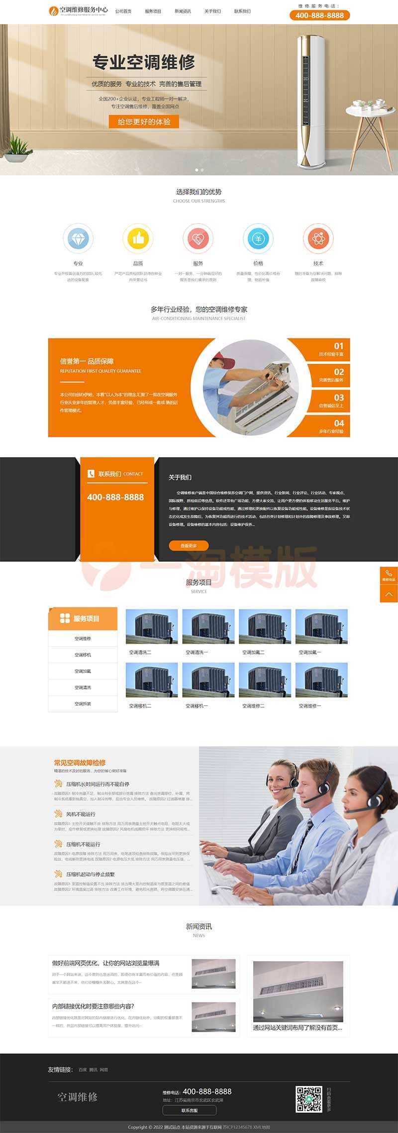PbootCMS内核开发的网站模板,该模板适用于空调维修服务网站、空调安装维修网站等企业,当然其他行业也可以做,只需要把文字图片换成其他行业的即可;