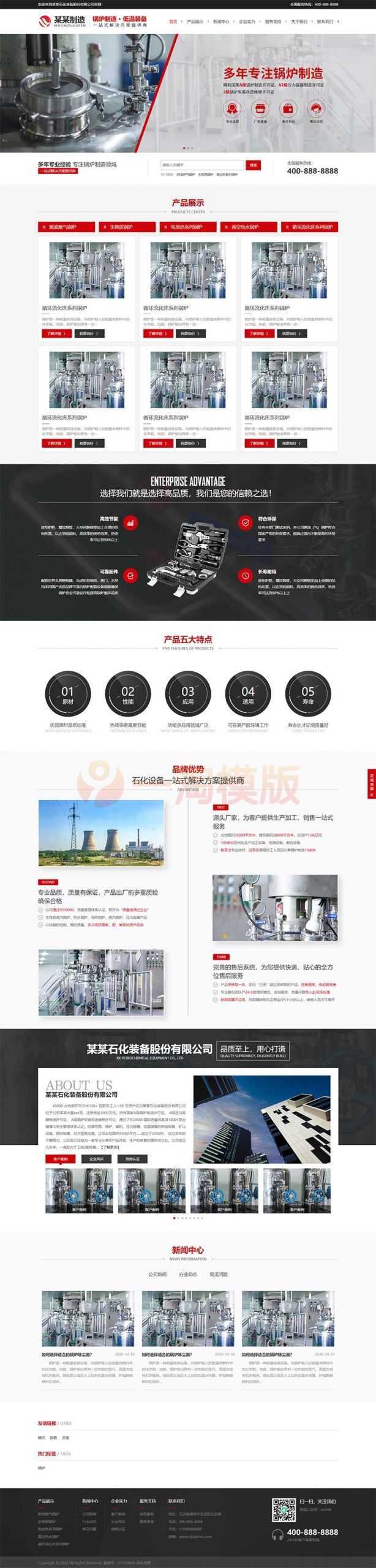 PbootCMS内核开发的网站模板,该模板适用于锅炉设备网站、石化装备网站等企业,当然其他行业也可以做,只需要把文字图片换成其他行业的即可;