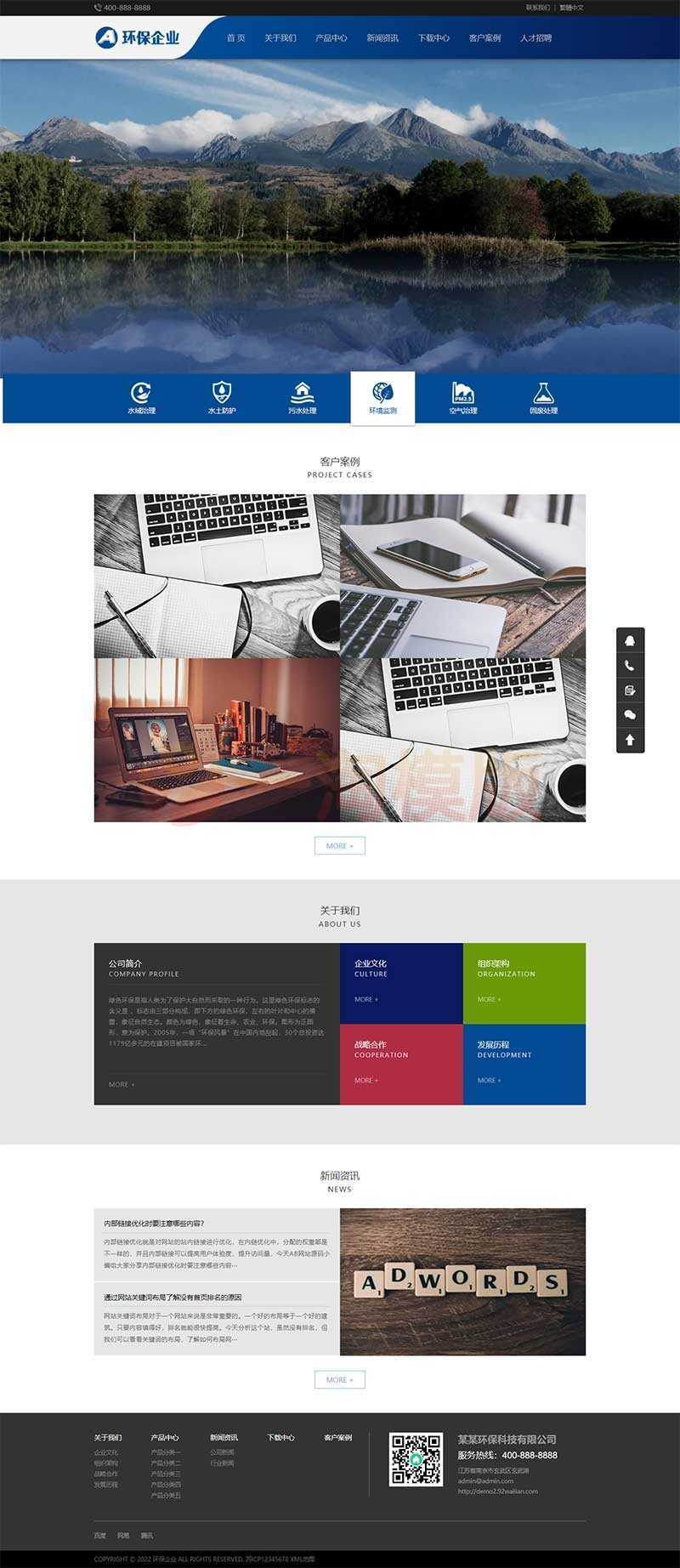 模板介绍:PbootCMS内核开发的网站模板,该模板适用于绿色环保网站、环保科技公司网站等企业,当然其他行业也可以做,只需要把文字图片换成其他行业的即可;自适应手机版,同一个后台,数据即时同步,简单适用!附带测试数据!友好的seo,所有页面均都能完全自定义标题/关键词/描述,PHP程序,安全、稳定、
