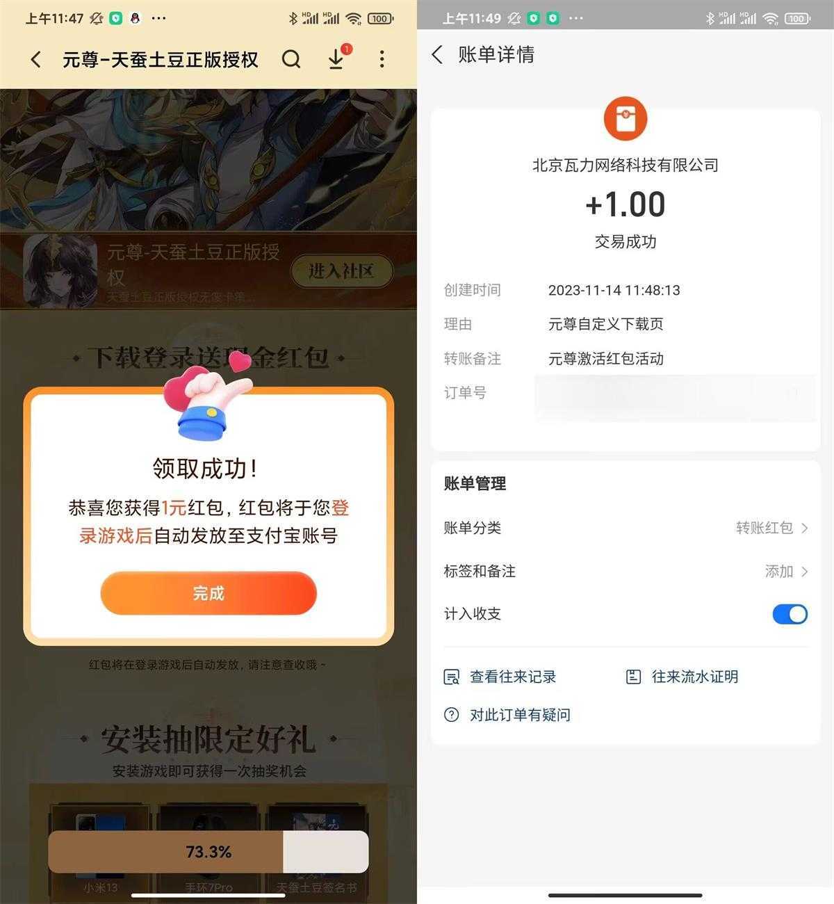 限小米和红米手机参与游戏中心APP->搜索“元尊”->直接领1元红包,然后登陆游戏后就到了