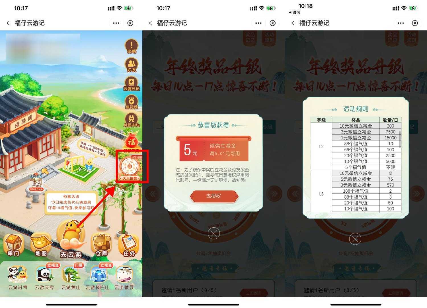 中行APP搜索“福仔云游记”->2级以上用户每天10点开始有1次机会,抽1~8元立减金
